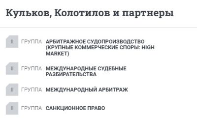 …обширный опыт в подготовке экспертных заключений и консультировании по российскому праву в международном арбитраже Chambers Europe